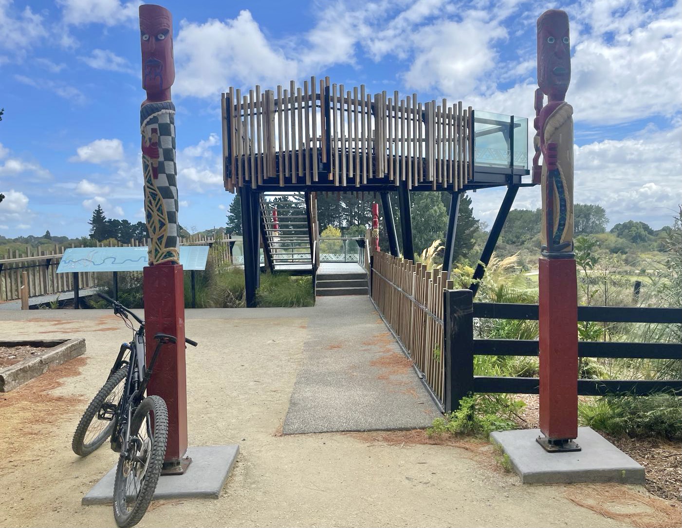 Good views & info at this spot near Turitea Pā which was used as recently as the 1850s, but unfortunately no remnants of the old pā remain today. Once a tall viewing platform stood on this same site called Te Pūhara o Turitea (The sentry watchtower of Turitea). That 9+ metre tall lookout gave Rangitāne people an unobstructed 360-degree view of anyone coming up or down the river & was part of a network of pūhara strategically placed along the Manawatū River and at various inland locations.